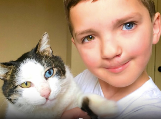 7-letni chłopiec, wyśmiewany z powodu różnokolorowych oczu i rozszczepu wargi, adoptował kota z identycznymi cechami.