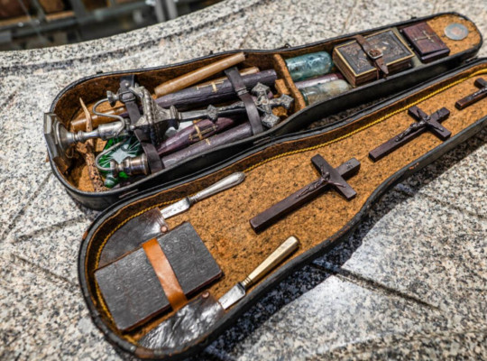 W jego skład wchodzą m.in. drewniane kołki, krzyże, modlitewnik oraz srebrne narzędzia, które miały chronić przed „nieczystymi siłami”. Dziś zestaw pełni funkcję edukacyjną i badawczą - pomaga lepiej zrozumieć dawne wierzenia ludowe.